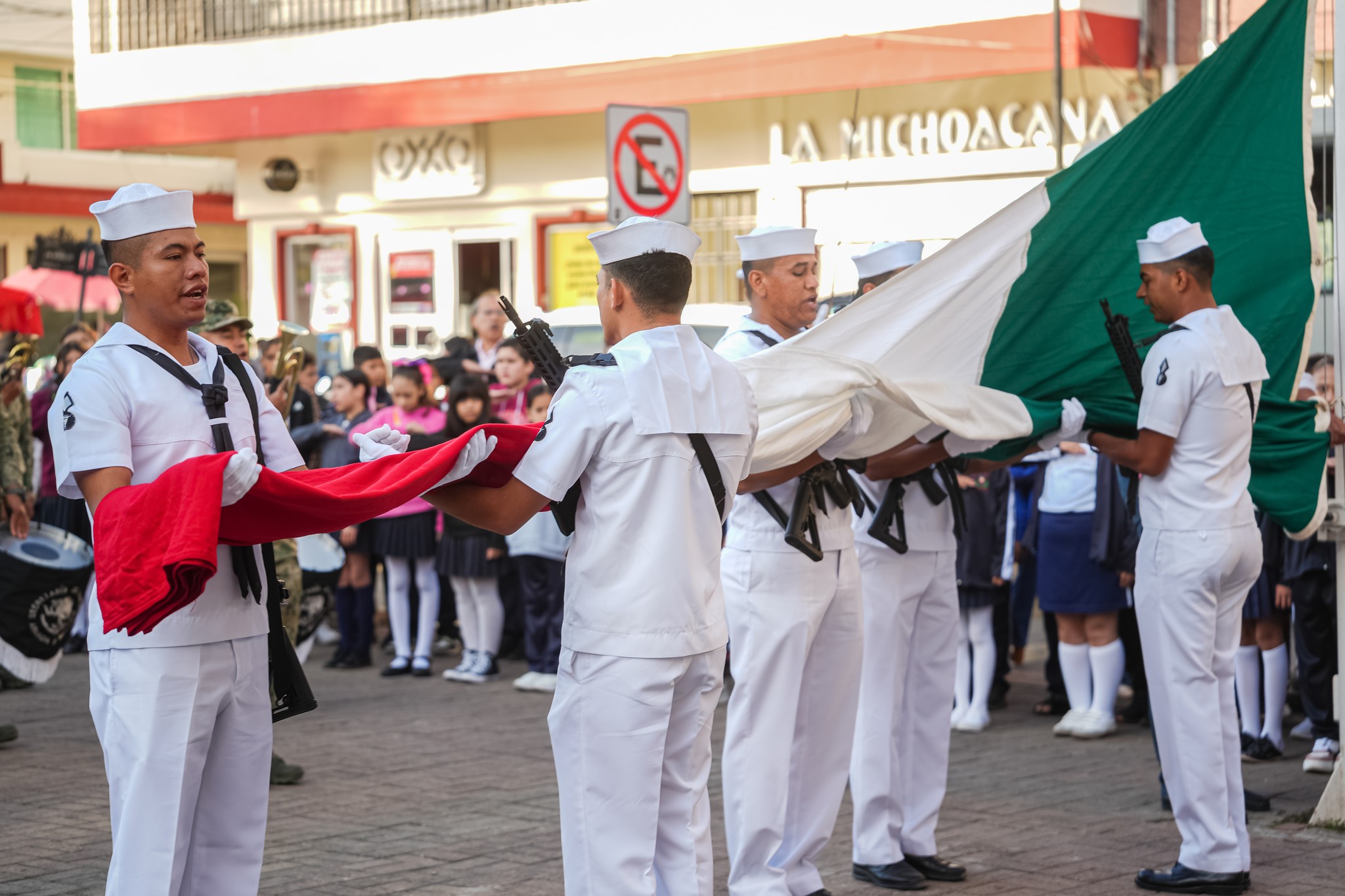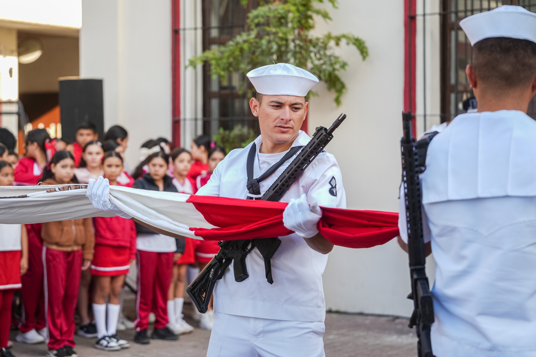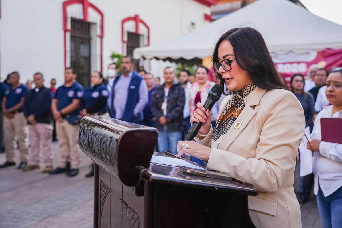 Desde la explanada de Palacio Municipal se llevaron a cabo los Honores a la Bandera, en compañía del alcalde Gustavo Ayon y su esposa, Estefania Carrillo, en conmemoración del aniversario de la Promulgación de la Constitución Política de los Estados Unidos Mexicanos.
